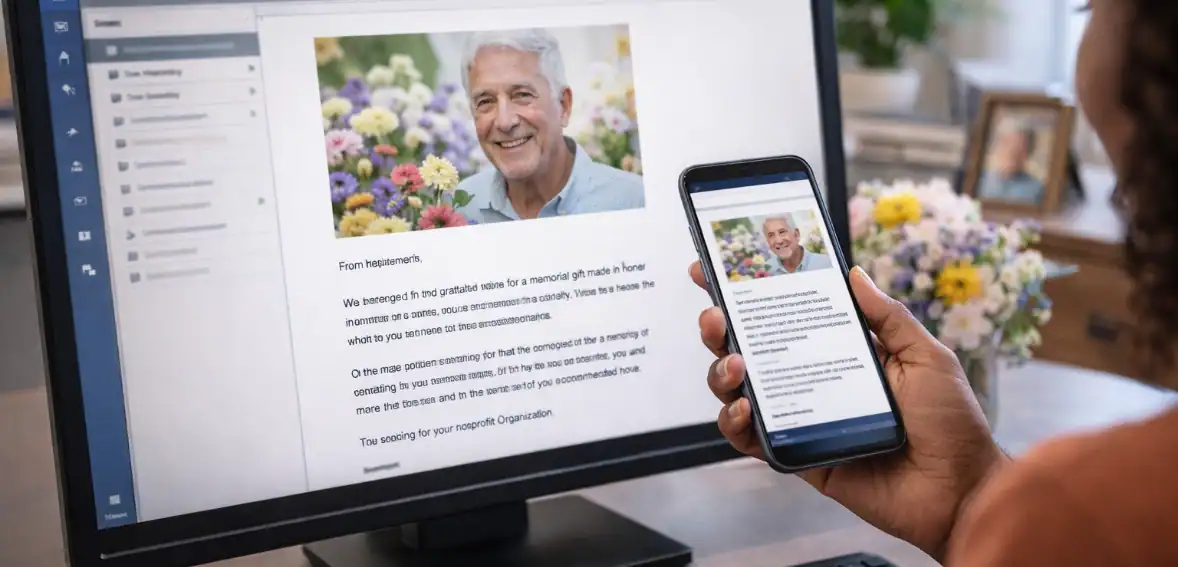 In memory donations often involve sensitive situations. All communication must follow proper procedures that show respect for others. Nonprofits need to verify that their messages use suitable language at the correct delivery times.